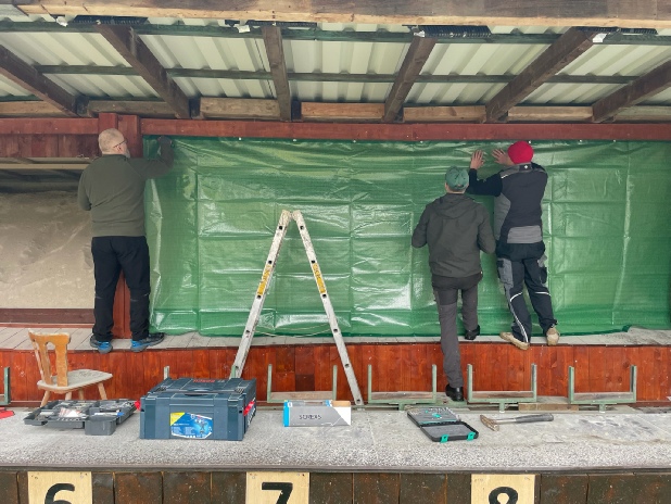 Auch beim zweiten großen Arbeitseinsatz in diesem Jahr haben sich wieder viele Mitglieder beteiligt. Neben der Grundreinigung aller Stände sowie vielen Reparaturarbeiten, wurden wieder die Bogenscheiben eingelagert und Laub gerecht, der Sturmschaden am Dach repariert und die Beleuchtung am 100m-